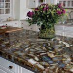 Такие листы могут так же иметь разнообразные цвета и декоры, хотя, подобрать его «один в один» к столешнице, скорее всего, не получится.