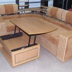 A table with an adjustable height and a hidden additional tabletop would be a good option. True, you may want to use it more often for entertainment during guests’ visits or on holidays. One day you will get tired of constantly putting it back in place.