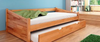 - Deep. This recess is made according to the size of the bed, as can be seen in the photo. If there is a double bed, it is placed at a right angle to the wall, and a child’s bed and a single bed are placed along the wall.