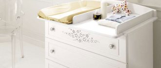 | Changing chest | A unique product that combines the functions of a chest of drawers and a changing table for babies. For convenience, such designs are equipped with small wheels to make them easier to move around the house. |