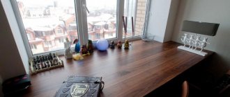 - folding tabletop - as an option, it folds out like a book. The tabletop is a working area and is attached to the wall with clamps. The main condition is reliable fastening; it must withstand physical stress. Folding tabletops are extensions of other furniture - for example, they are screwed to the side surface of a cabinet or fixed directly to the wall;