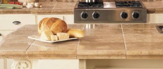 A do-it-yourself tile countertop, lined with ceramic tiles, can be made from the work surface available in the kitchen set, or made independently from moisture-resistant fiberboard (MDF) or plywood. When making a tabletop yourself, it is possible to slightly increase its size or give it the necessary shape: for example, make a recess in it for a more convenient location near the kitchen table or make it in two or more levels - by arranging additional surfaces on which you can place small household appliances or other kitchen utensils.