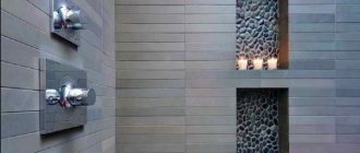 - The texture of the walls and the finish of the cabinets. For walls covered with tiles, a cabinet made of glass and metal with a glossy surface and a lot of mirrors is better suited.
