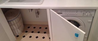 The photo shows a narrow mirror cabinet that does not occupy the second corner and makes it possible to rationally use the niche.
