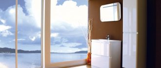For a small bathroom, light furniture or a cabinet with mirrored doors is suitable.