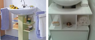 Bathroom cabinets have a right to life: they have a simple geometry and are made from affordable materials, they are budget-friendly, but always exclusive. If you have tools in the house and you know how to use them, then this is a feasible task.