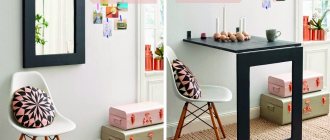 Happy owners of sewing machines cannot always enjoy their happiness to the fullest. It gets boring every time you take the typewriter out of the closet and set it on a table - a dining table or a desk, well, if not on a coffee table. But don’t rush to buy a special table; this article clearly shows that it’s a sewing table with your own hands . Limited space or budget or lack of experience will not be a hindrance. Here are the most affordable, low-cost options for tables for a sewing machine , as well as several examples of how to make a cutting table . Having your own sewing corner in an apartment is the dream of every housewife, but in modern small-sized apartments such a dream is unlikely to be realized. This article offers solutions for small spaces and modest budgets. Moreover, the tables were not made by professionals; most of the authors are very far from carpentry. This means that you will also definitely find here exactly your version of a table for sewing equipment .