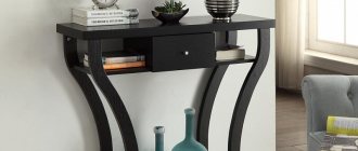 This is a familiar table with 4 legs, pushed against the wall. As a rule, there is a mirror above it, and one or more sliding drawers are made in the tabletop. The classic model is compact. It perfectly complements any interior: from high-tech to baroque.