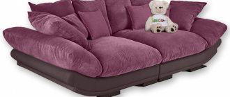 This material is newer. Its production is easier and cheaper, but it is not as durable. It uses natural or synthetic raw materials, which are divided into short fibers, electrified and sprayed onto a primed substrate coated with glue. As a result, the material visually imitates natural. Only an expert can distinguish a suede-look sofa from a natural one.
