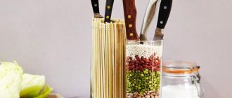 Весьма оригинальный сувенир на кухню можно изготовить, если использовать самые неожиданные предметы. Например, интересная сушка для кухонных принадлежностей может получиться из карандашей: