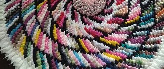 - Для выполнения бортиков выкройте два прямоугольника 70х30 см и один прямоугольник 50х30 см. Сшейте каждый из них, соединяя попарно длинные стороны. На коротких – выполните кулиски, вставьте в них ленты, затяните в одной из двух. Вставьте наполнитель, формируя валик, затяните ленту.
