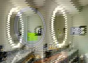 Круглые и овальные зеркала самых разных размеров и форм подходят для ванных с классическим оформлением. Подсветка, как правило, «обрамляет» все изделие и может быть выполнена в виде узора или оригинального орнамента.