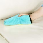 После того, как распаковали доски, на них обнаружились пятна клея, какие-то другие, непонятные разводы. Устранить все это можно растворителем. Берем мягкую белую (не цветную) тряпку и все хорошо протираем.